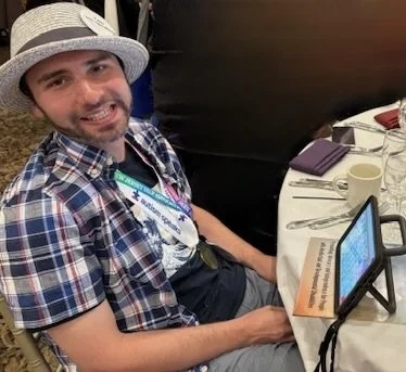 William’s AAC journey began with him writing in his mother’s hand. As a child in the early 2000s, he was given a large computer with a removable touchscreen. But it was frustrating to use and difficult to calibrate. His teachers struggled with it as well. He’s grateful that today’s touchscreen devices are so much easier.